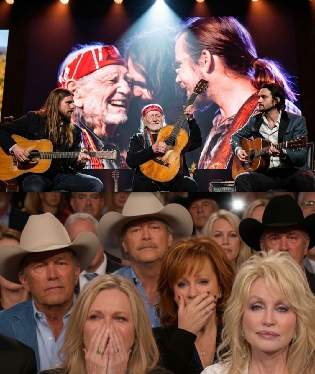 Musically, the harmonies are carefully balanced. They do not overshadow Willie’s distinctive tone. Instead, they cradle it. The blend creates warmth without sacrificing clarity. It feels organic, unforced — the natural result of voices that have sung together countless times.