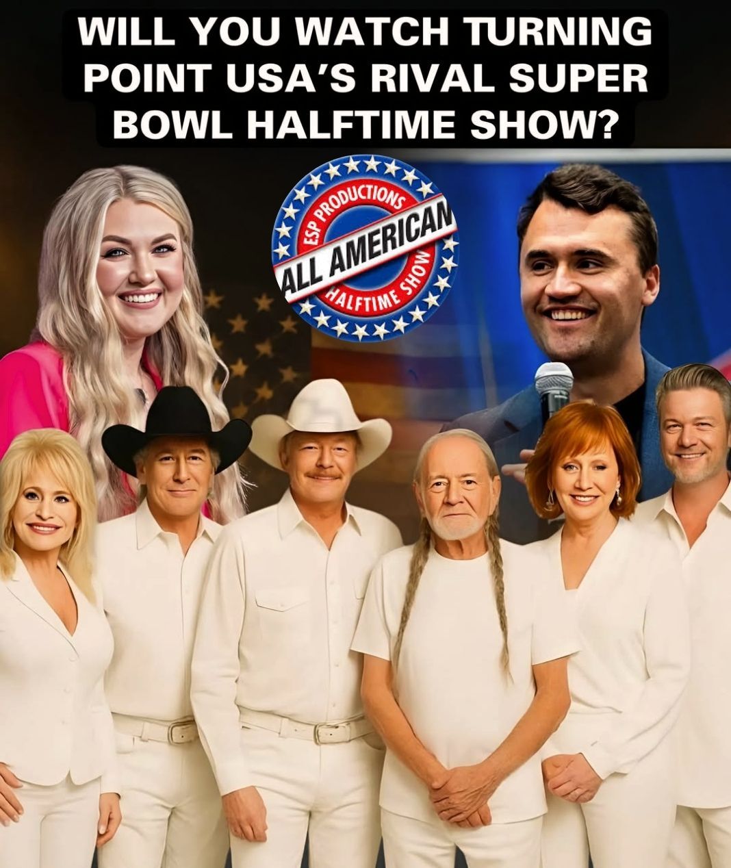 A NATION’S HISTORY UNFOLDS: Six Country Legends Unite for the “All-American Halftime Show” — A Powerful Tribute to Faith, Freedom, and the Late Charlie Kirk Nashville, Tennessee — In an unprecedented moment for American music, Dolly Parton, Alan Jackson, George Strait, Reba McEntire, Ronnie Dunn, and Willie Nelson are joining forces for the All-American Halftime Show. Produced by Erika Kirk in honor of her late husband, Charlie Kirk, the event promises to be more than a performance — it’s a heartfelt celebration of unity, belief, and the enduring spirit of a nation.