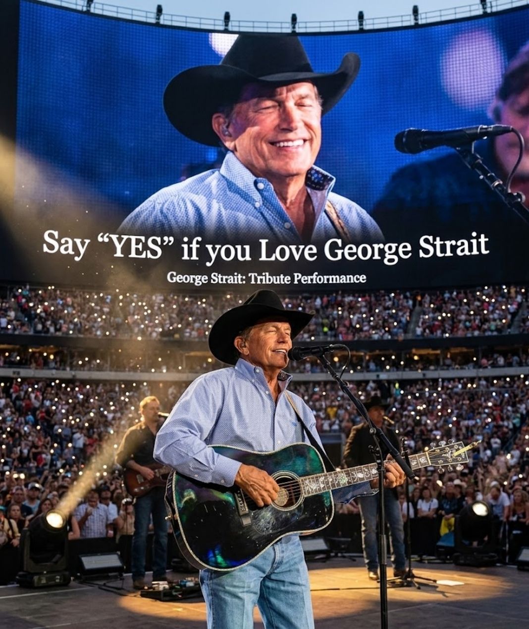 George Strait did not need to announce anything. He never does. He simply stood there with that unmistakable calm presence, letting the music speak first. When his voice entered, it carried the same steady clarity that has defined his career for decades—unforced, unhurried, and deeply rooted in lived experience. There was no attempt to modernize or reframe the song. Instead, he let it remain exactly what it has always been: a story told honestly, without embellishment.