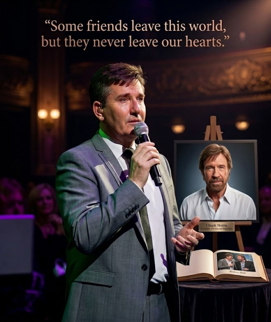 He then quietly honored his friend, Chuck Norris, not as a global icon, not as a legend known around the world, but simply as a friend, a kind man, and someone who had meant a great deal to him over the years. He spoke about conversations they had shared, about laughter, about quiet moments away from the public eye — the kind of memories that never appear in newspapers but mean everything to the people who lived them.