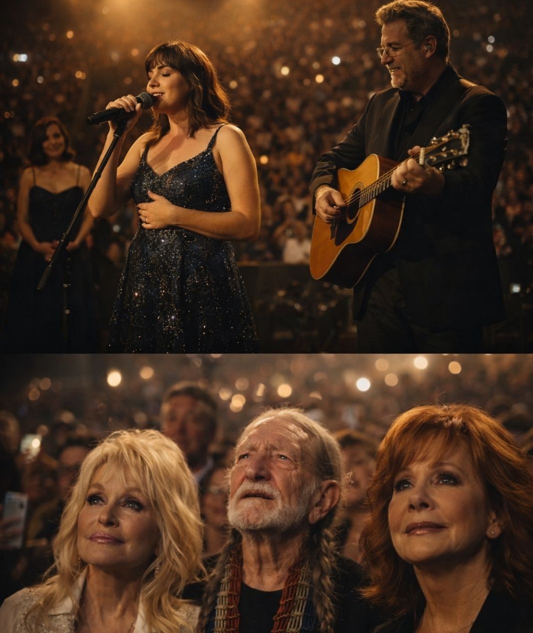 For audiences familiar with Vince Gill’s career, this moment felt especially significant. He has always been an artist who values sincerity over display. Throughout decades of acclaim, he has remained anchored in the belief that music should serve truth, not ego. This performance reaffirmed that belief. By inviting his daughter into a song written for Amy Grant, he demonstrated trust — in the song, in his family, and in the audience’s ability to listen with care.