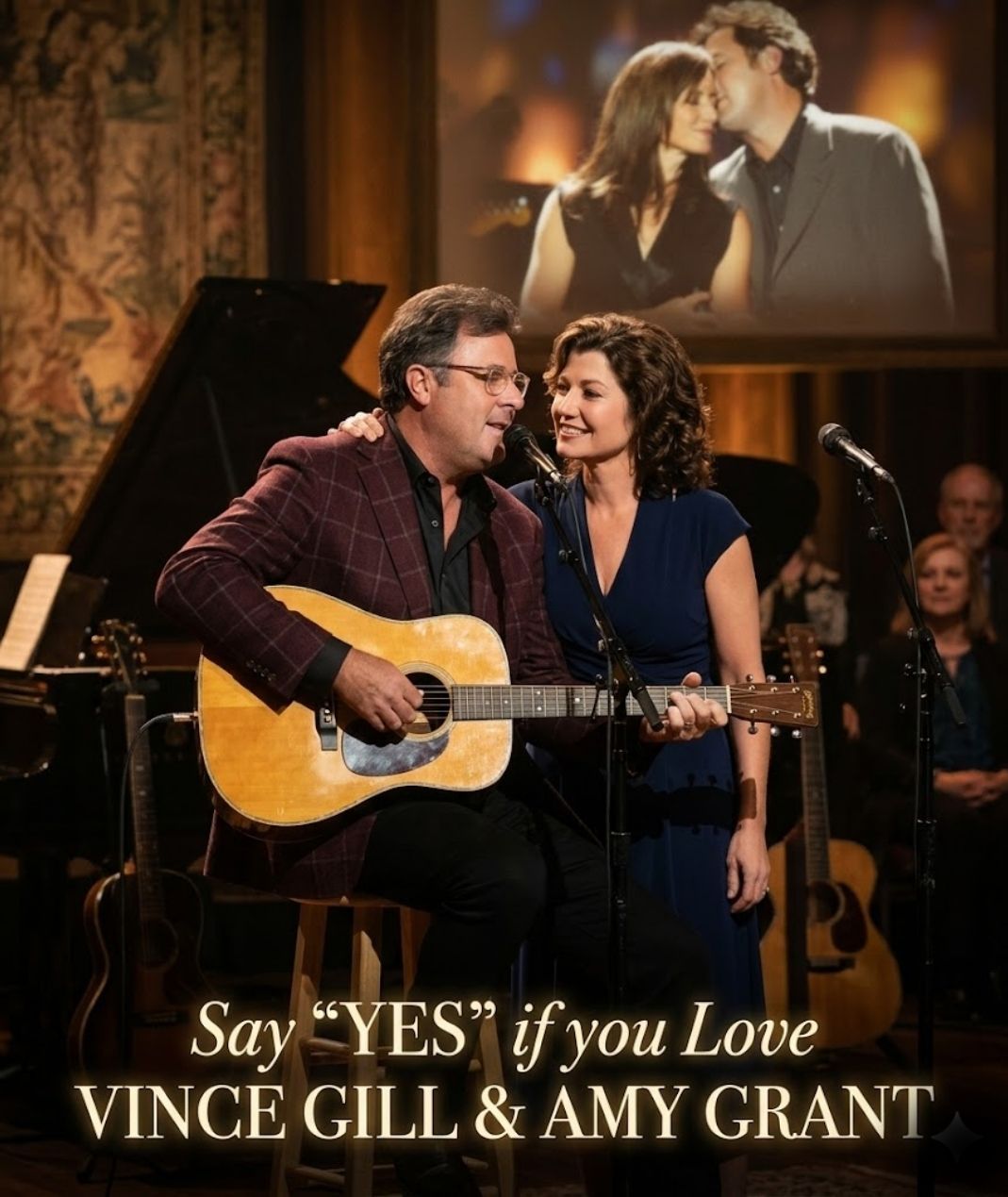 Beside him stood Amy Grant, her expression already carrying a depth of emotion that hinted at what was to come. She did not need to speak. The way she stood, the way she watched him, said enough. There was a shared understanding between them, something unspoken yet unmistakably present, as if both knew that this moment would reach far beyond the stage.