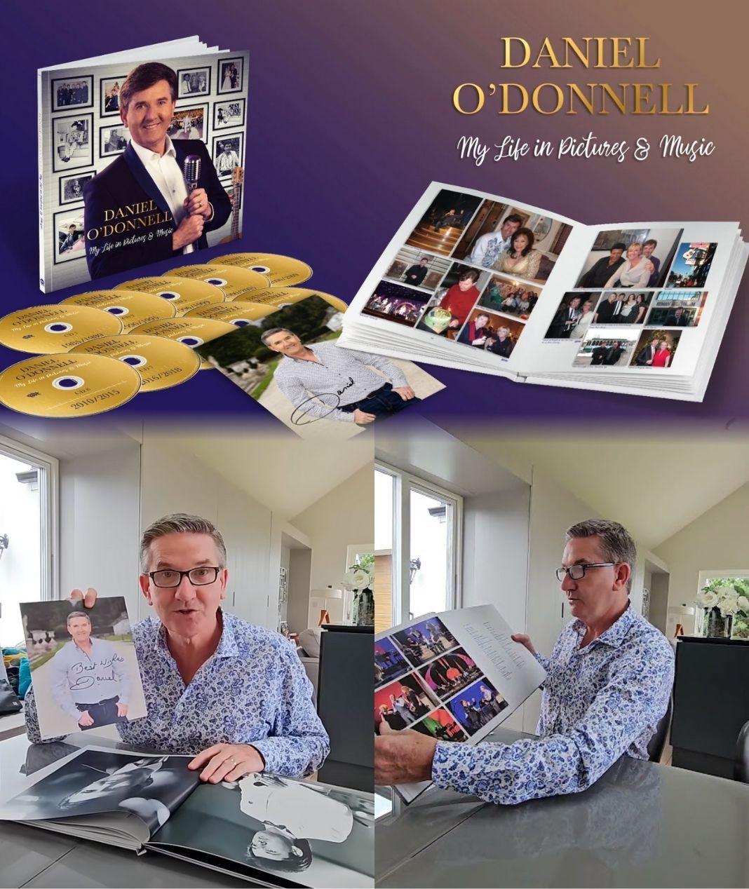 Taking a first look at My Life In Pictures & Music, the new bookset from Daniel O’Donnell, it becomes immediately clear that this is not a project driven by nostalgia for its own sake, nor is it a glossy celebration of success. Instead, the bookset unfolds as a quiet, deeply personal reflection — one that mirrors the very qualities that have defined Daniel’s career for decades: sincerity, gratitude, and a steady respect for the people who have walked alongside him.