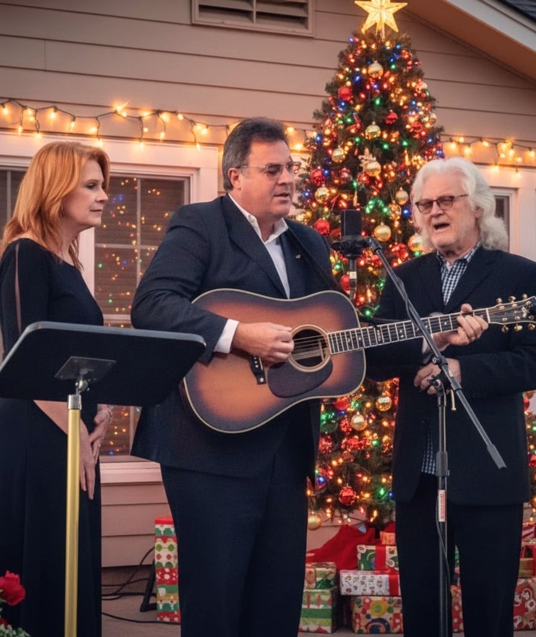 One of the most beautiful aspects of Vince’s performance is the way he handles the melody’s subtle rises and falls. He never forces his voice to soar; instead, he lets the song breathe. This restraint, rooted in his lifelong mastery of country, gospel, and traditional pop phrasing, gives the performance a timeless quality. It feels intimate, comforting — the musical equivalent of sitting beside a warm fire with loved ones nearby.