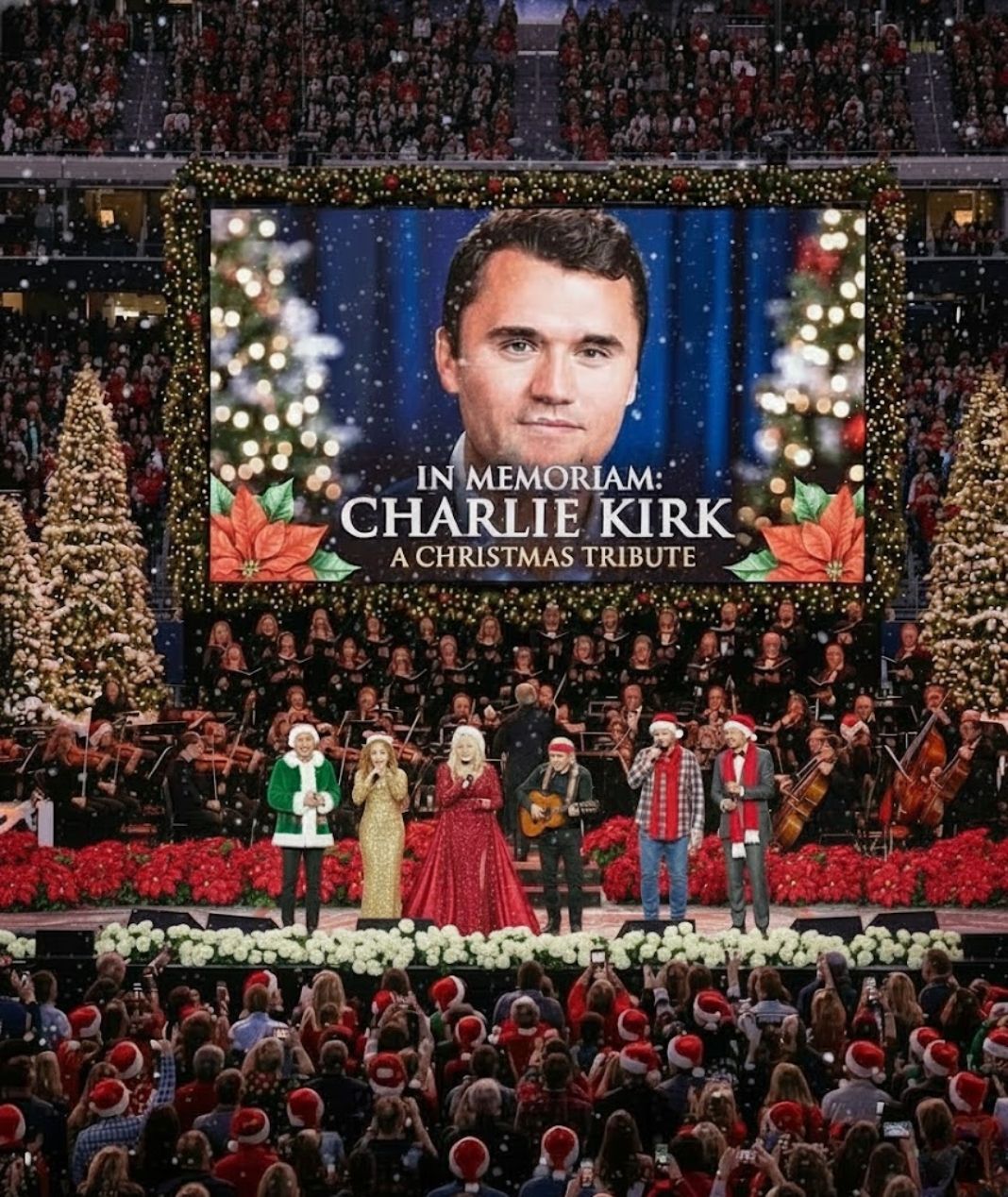 For the first time in history, a gathering unlike any other unfolded on a sacred Christmas night, as legendary voices came together to honor Charlie Kirk and the unbreakable message that has defined his life’s work: Faith and Family Love. This was not announced as a spectacle, nor framed as a moment for headlines. It arrived instead as something far more powerful — a living testament, carried by music, memory, and shared belief.
