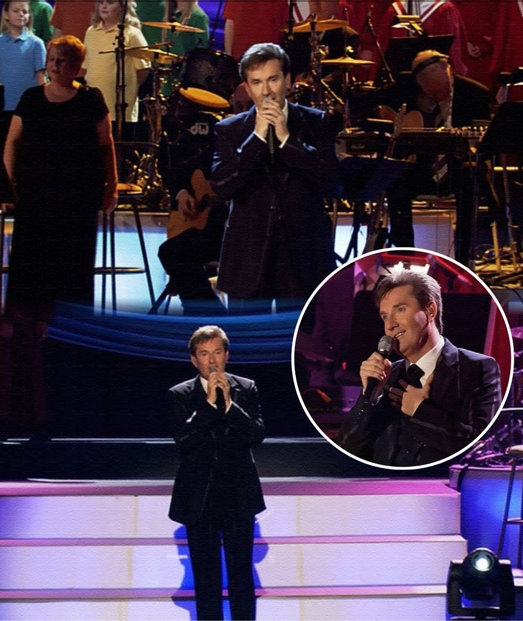 The performance begins quietly. Soft guitar chords and a delicate keyboard line set a peaceful tone as Daniel steps forward, his familiar warm smile meeting the audience with the ease of an old friend. Then he begins to sing the opening verse, his voice tender and steady, carrying the message of hope and healing that the song has delivered to audiences for decades.
