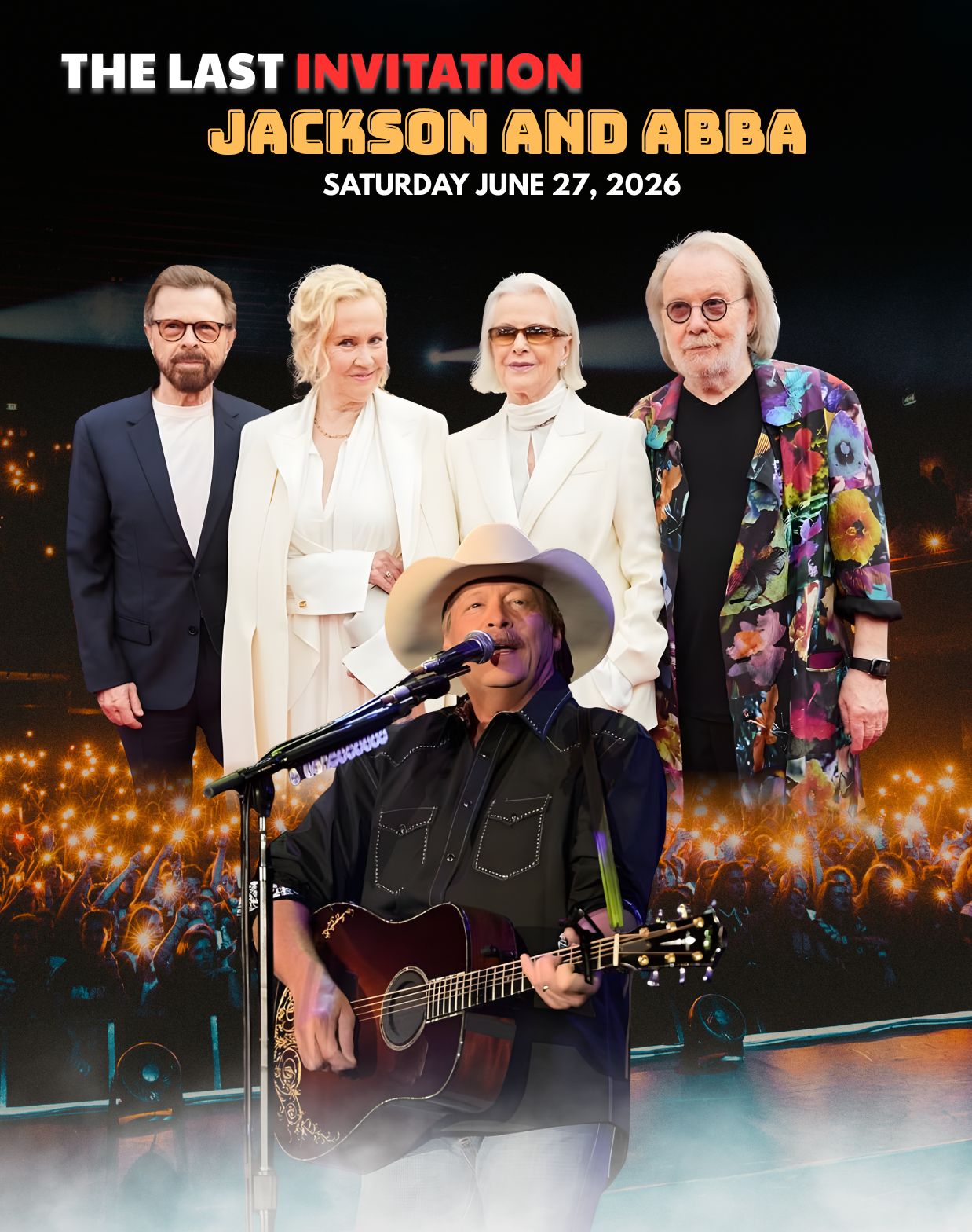 For decades, no one would have dreamed of such a meeting — ABBA, the architects of pop perfection, and Alan Jackson, the voice of American country soul, sharing the same stage. Their music came from different worlds: one built on European elegance and disco shimmer, the other grounded in the heart of Nashville, where every song tells a story. Yet somehow, against all odds, those worlds are about to collide. On June 27, 2026, inside the vast expanse of Nissan Stadium, they will meet for one extraordinary night — a night already being called “the sound of goodbye,” a night when melody meets memory, and the past and present intertwine in a single, unforgettable harmony.