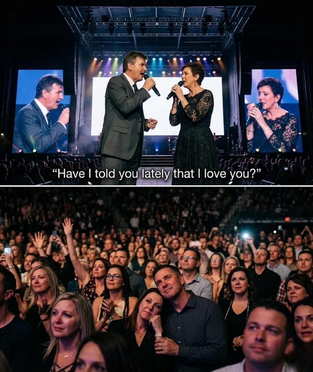 The beauty of “Have I Told You Lately” lies in its simplicity, and on this night, that simplicity became its greatest strength. There were no grand gestures, no need for dramatic emphasis—only the honest delivery of words that have stood the test of time. Each lyric seemed to carry with it the weight of shared memories, of years spent side by side, of moments both ordinary and extraordinary that quietly shape a life together.