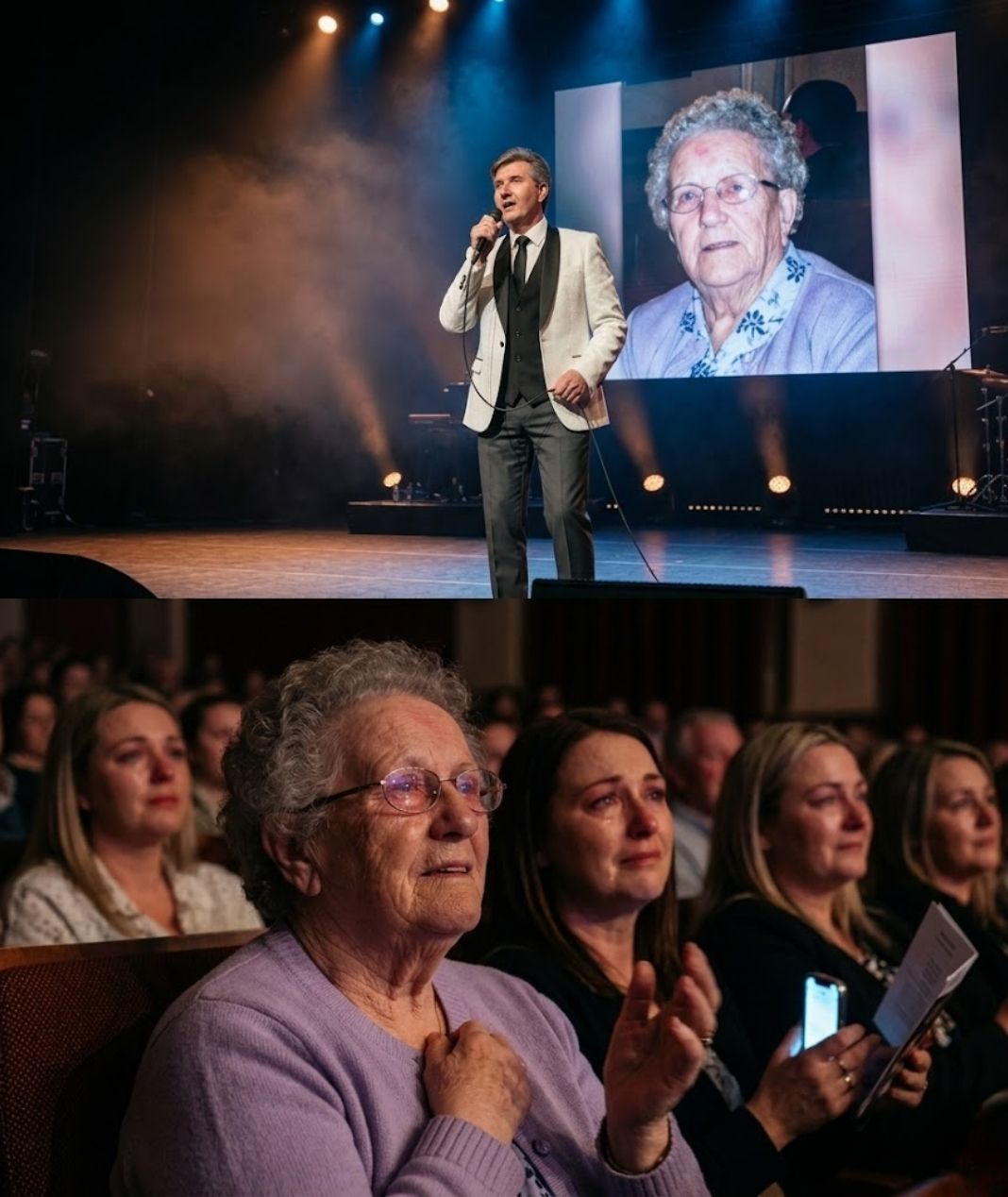 Those few words changed everything. The audience was no longer just listening to a performance; they were witnessing a son remembering his mother, not as a public figure, but as a person who had shaped his life, his values, and his career. Many people in the audience were visibly emotional, some holding hands, others wiping away tears, because almost everyone could understand what it means to remember someone who gave you everything.